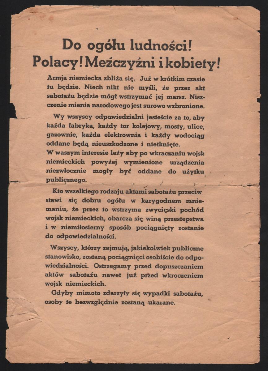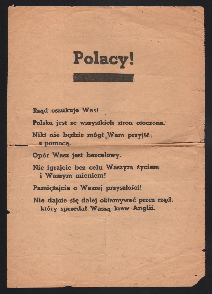 3, 4. Niemieckie ulotki propagandowe skierowane do Polaków, 1939 r. Zbiory Muzeum Historii Kielc