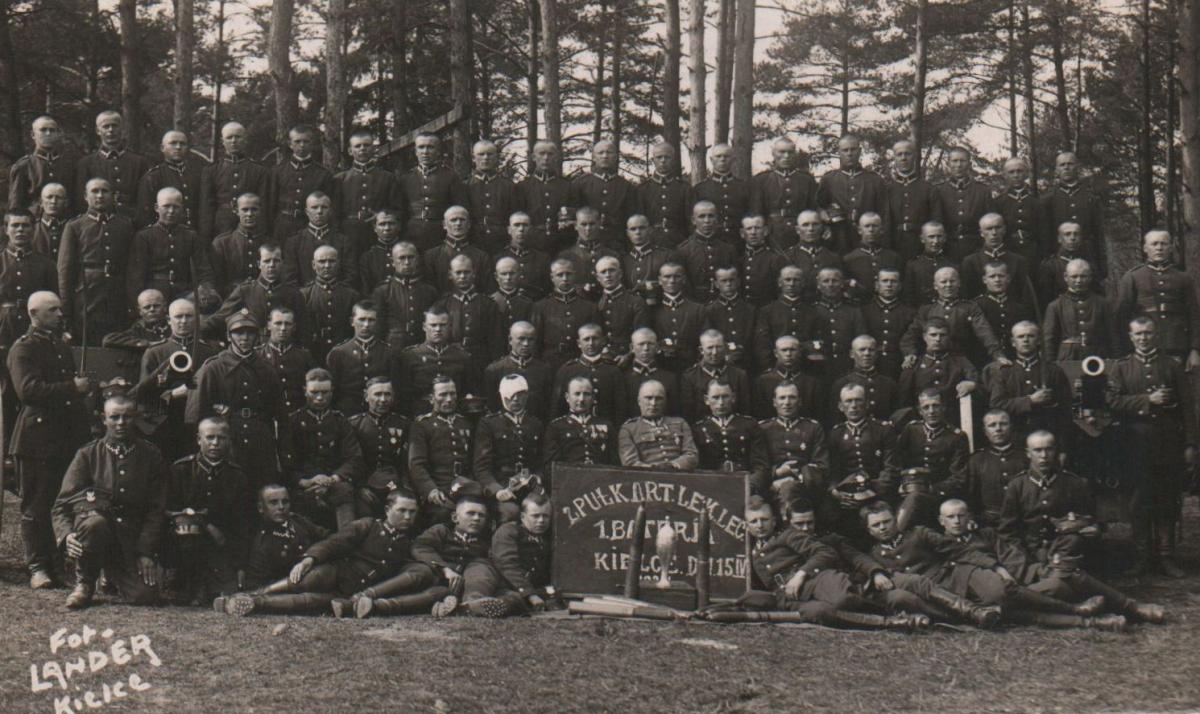 1. Portret zbiorowy żołnierzy 1 baterii I dywizjonu oraz kadry oficerskiej 2 Pułku Artylerii Lekkiej Leg., Kielce, lata 30. XX w.