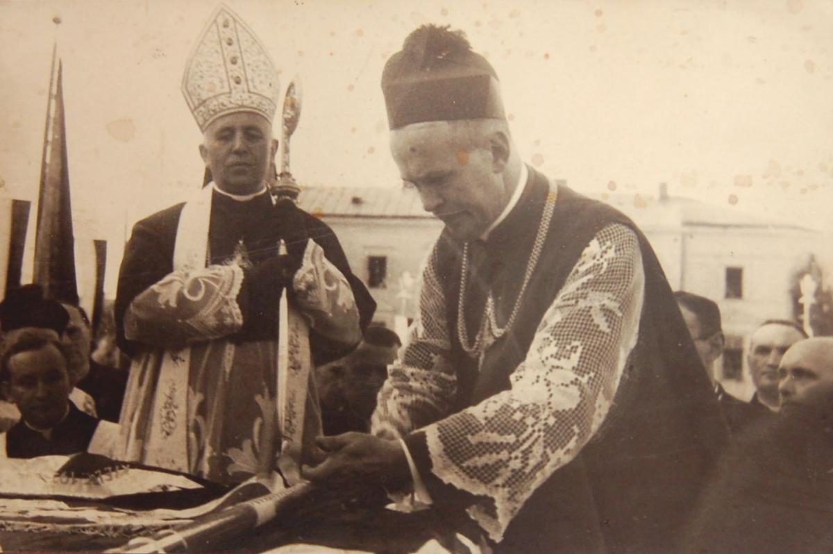 2. Poświęcenie sztandaru 2 Pułku Artyleri Lekkiej Leg. przez kieleckiego biskupa sufragana Franciszka Sonika i biskupa polowego Wojska Polskiego gen. Józefa Gawlinę, Kielce, 1937 r.