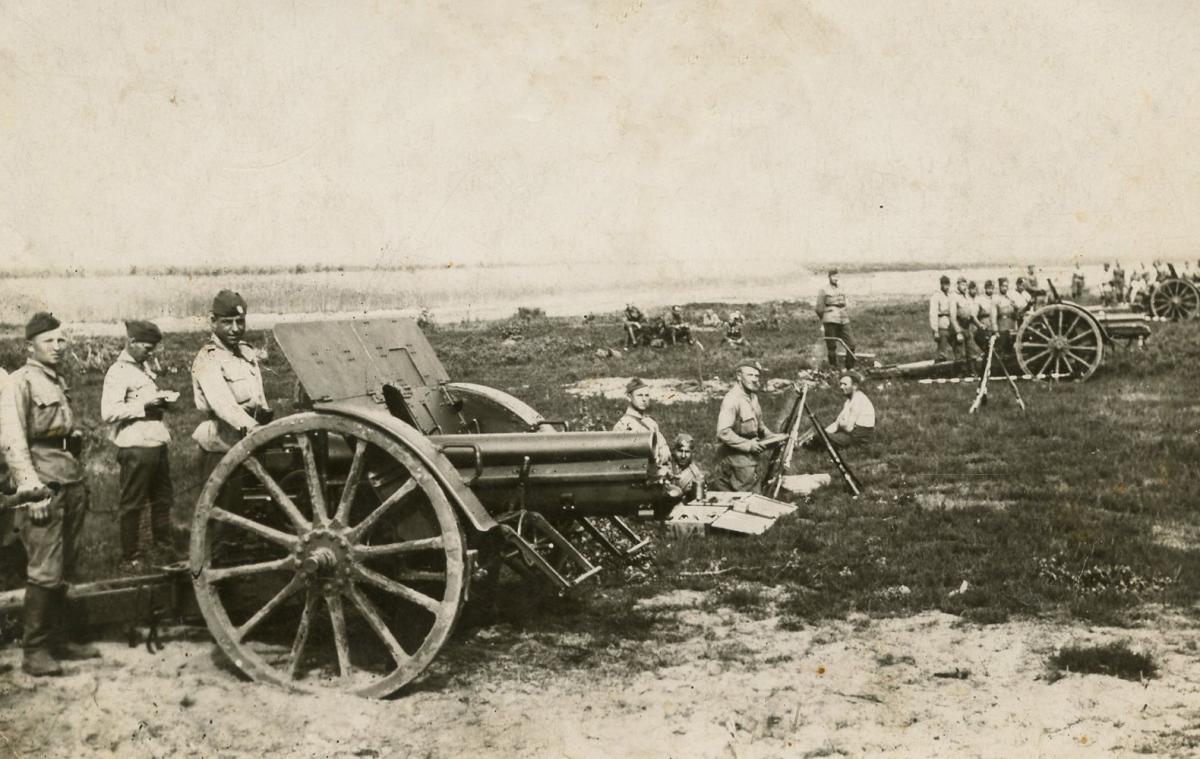 4. Żołnierze 2 PAL Leg. na poligonie przy haubicach, Niwki Daleszyckie, 1932 r.