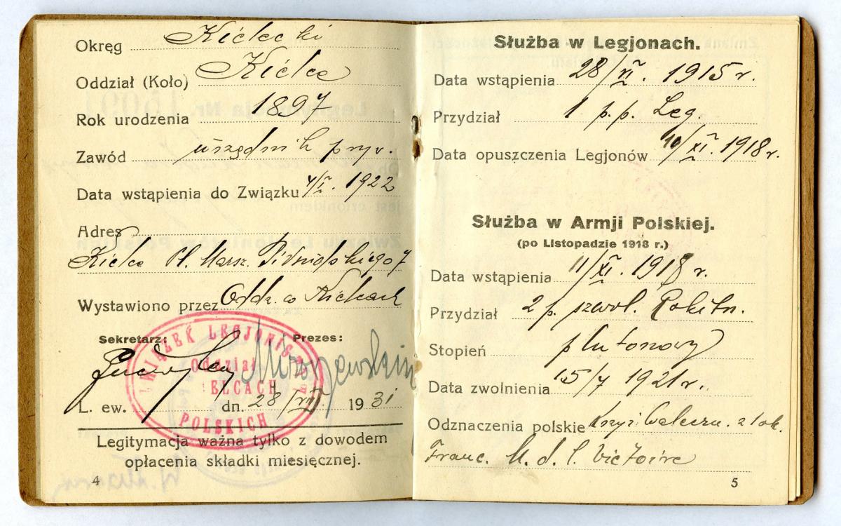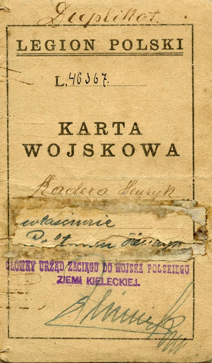 - Służba wojskowa Henryka Rotmana Kadery wyszczególniona w legitymacji członkowskiej Związku Legionistów Polskich, lata 30. XX w.