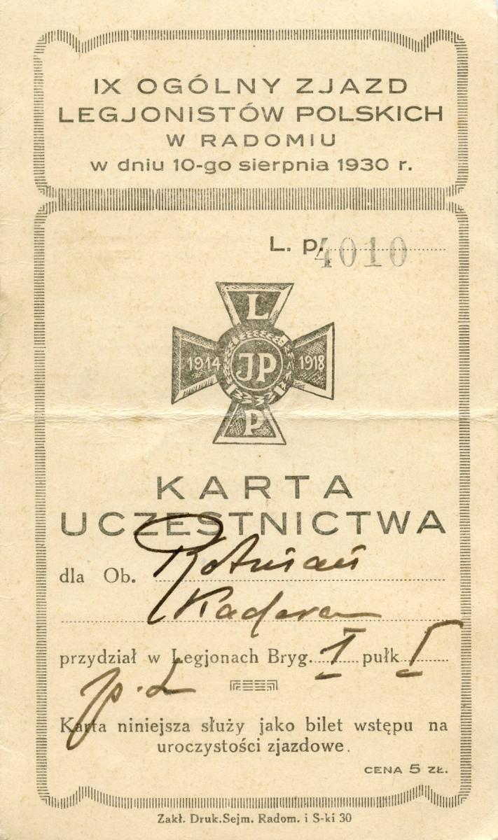 - Bilet wstępu na IX Ogólny Zjazd Legionistów Polskich, 1930 r.